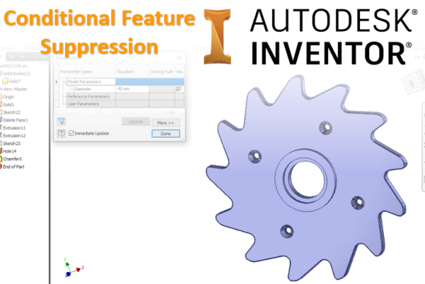 Quick Sunday Morning blog post! The title is not very snappy, but conditional suppression in Inventor is really powerful. Any feature in an Inventor Part file can be suppressed, based on the value of a parameter. To set the suppression, simply right-click on the feature that you wish to control, then choose "Properties". In the... Continue Reading →