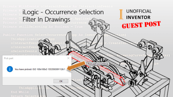 Guest Post by Jhoel Forshav When developing iLogic rules, it’s quite common that you’ll need to prompt the user to pick something from the model window. For example, it could be a face, a component occurrence, a model edge etc. For most of the different types of selections your code might require, there’s a corresponding... Continue Reading →