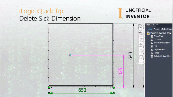 Have you ever wanted to delete orphaned or unattached dimension on an Inventor drawing? The good news, is that it's really easy to do, and Autodesk have provided a sample VBA program to do this in the API help files. I've converted this to work with iLogic, see the GIF below: Here's the iLogic code... Continue Reading →