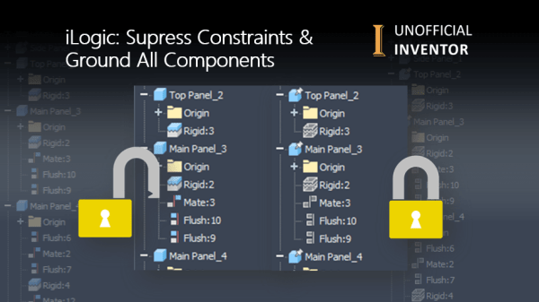 Several months back, I created an iLogic routine that will delete all mates & joints in an assembly, and ground all of the components. I was asked if I could do something similar for a client. The requirement was to supress all mates and joints, then ground all of the components in the assembly. The... Continue Reading →