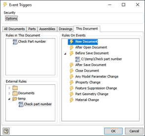 In some cases, you want to have a rule that is triggered by the “Before Save” event trigger. For example, to check if the iProperty “Part number” was set. Something like this;