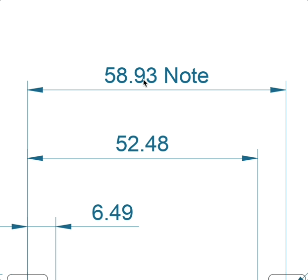 To add notes below a dimension, use “SHIFT” + “ENTER”, this will put the “Note” shown below on a new line.